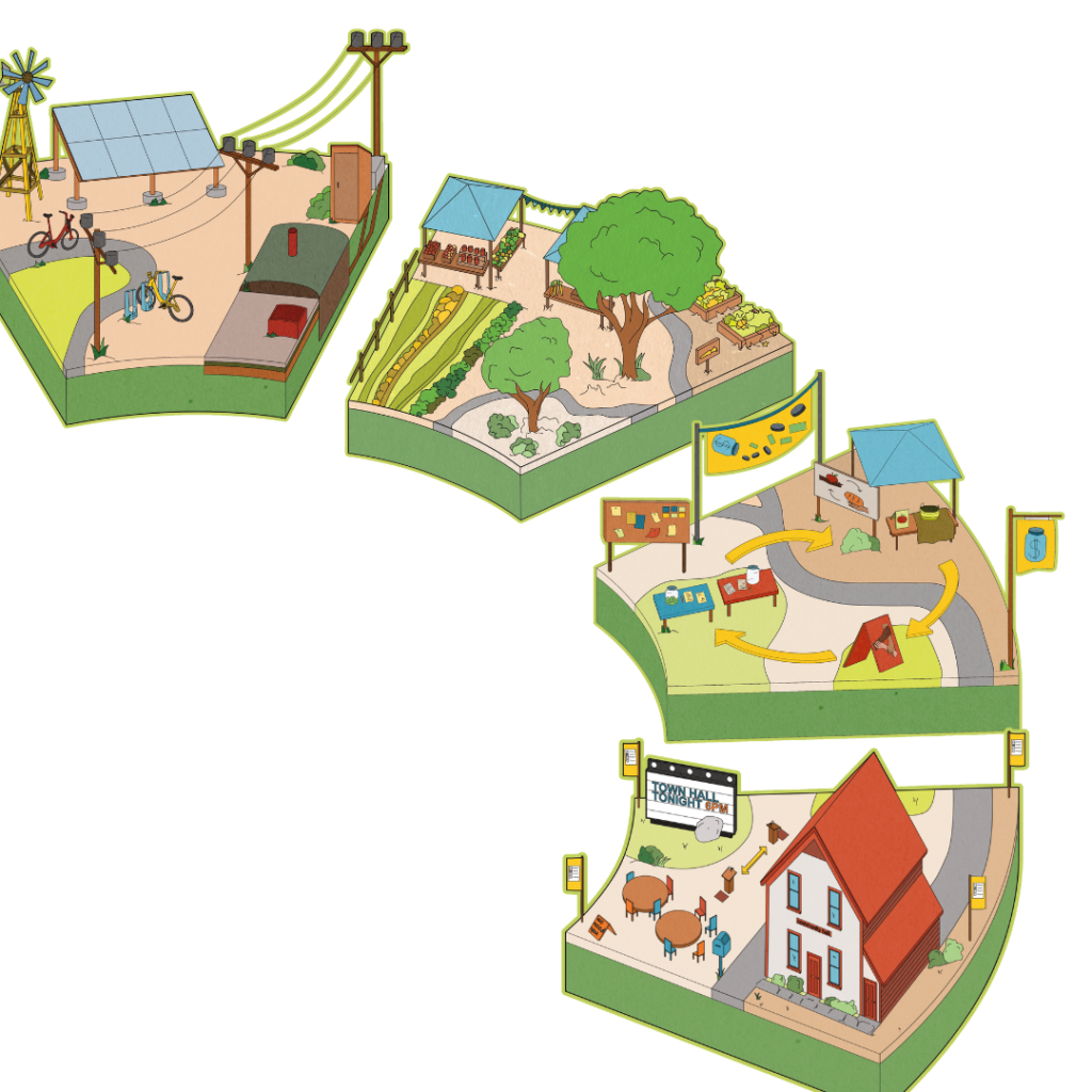 Over the past decades, rural communities have been hollowed-out; loss of employment, closure of local businesses, landscapes disrupted by industry, and youth migration have all impacted these communities. Rural communities are facing an affordability crisis, as concentrated ownership, attacks on labour, the climate crisis, and racial and economic injustice ramp up. We are seeing our key food, energy, and housing systems being consolidated by for-profit corporations. Many people are losing faith in democratic institutions, and we are becoming increasingly isolated from each other and promising local initiatives often lack the time and resources to thrive. We are left grappling with the questions of how to respond to this rapidly changing world? How can we strengthen our local agency and our social, economic, and ecological resilience?